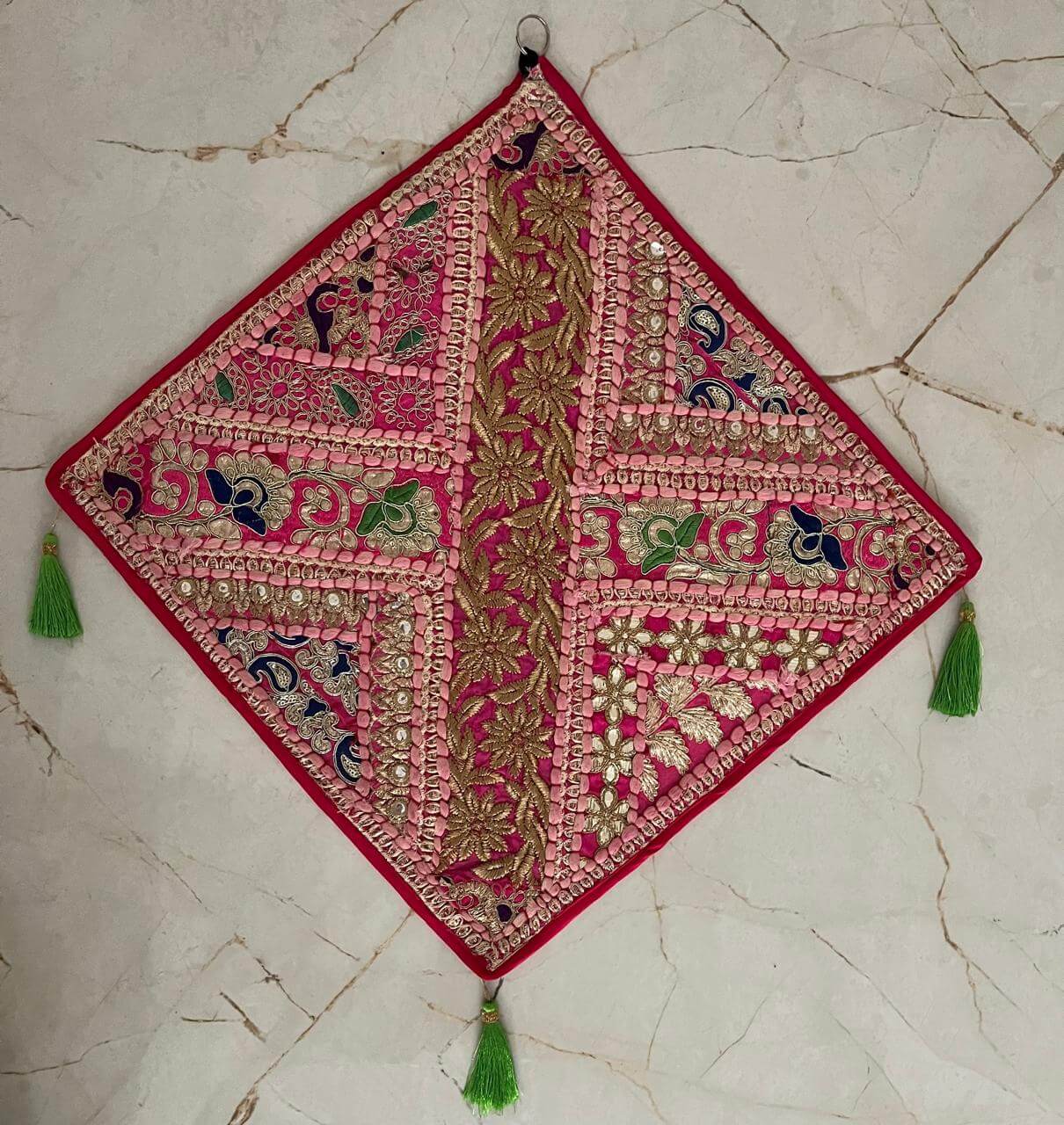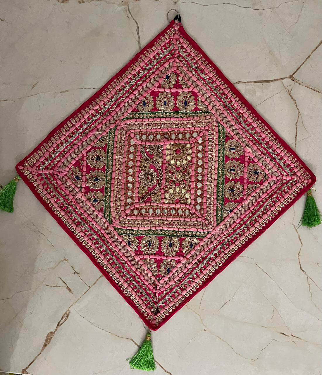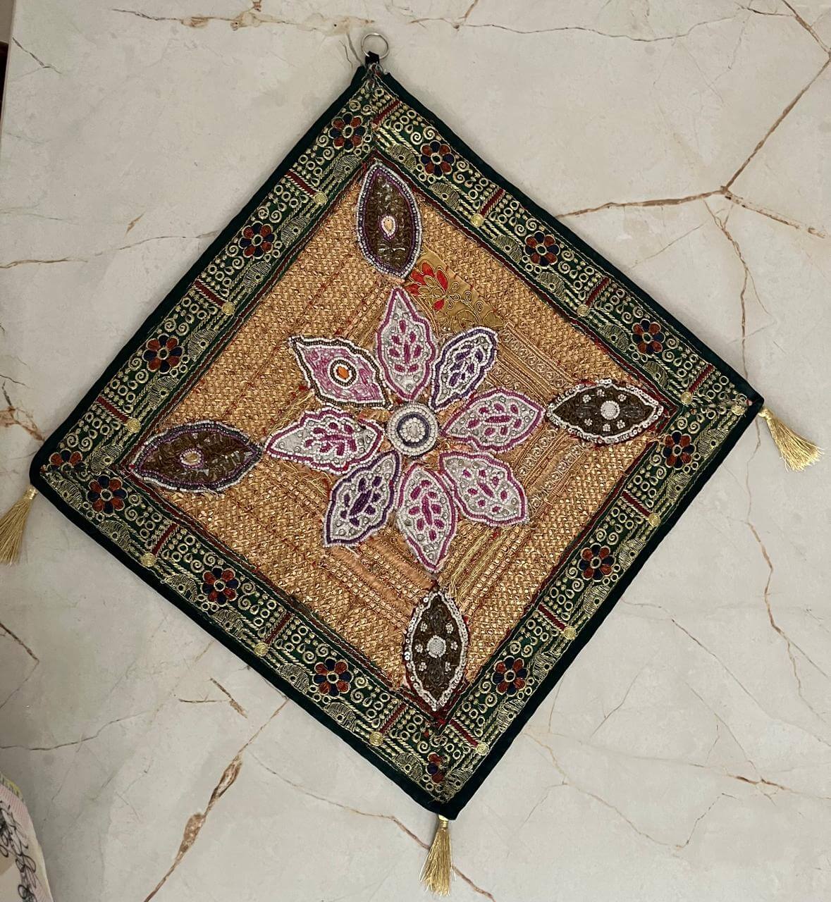 Beautiful wall hanging with hand embroidery can be used during any festivals to make your place beautiful.It can be used a a table mats as well.